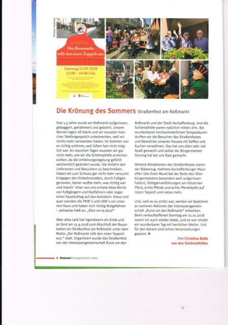 Lesen Sie doch einmal den Textbeitrag von Frau Bolle, Geschäftsleitung der Diakonie -Schöntalhöfe Aschaffenburg – Mitglied der Interessengemeinsafcht „Rund um den Roßmarkt“ – genau SO war es!