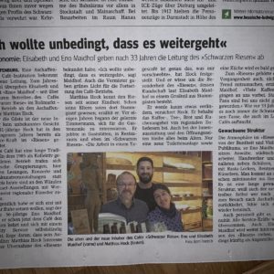 • Cafe Schwarzer Riese – Elisabeth und Eno Maidhof übergeben zum 31.12.2018 / 01.01.2019 nach 33 Jahren an den Aschaffenburger Matthias Hock …
