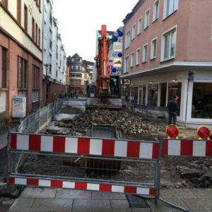 So, nun also endlich wird im Rossmarkt gebaggert. Den Anfang hat Abfang März 2017 das schwere Gerät an der Ecke Rossmarkt/Badergasse gemacht. Die Verkehrs-Umleitung steht und wir schauen mal, wie die Arbeiten nun voranschreiten…