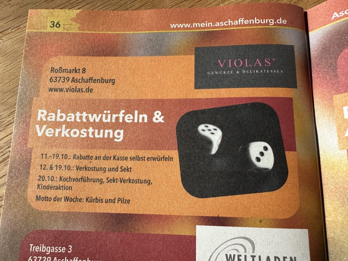 • „2.Aschaffenburger Herbstwoche“ 11.-20.10.24 – wir Einzelhändler im Roßmarkt sind dabei