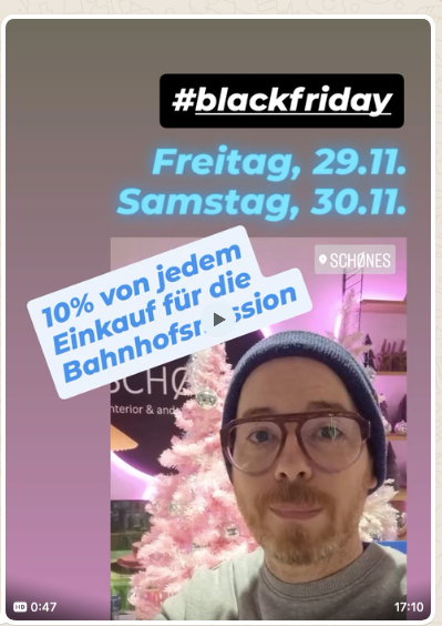 Steffen von SCHØNES- Roßmarkt 34 hat ein tolles Rahmenprogramm Roßmarktplätzchenzusammengestellt: DJ von SWEAT legt auf, Haunoi ist mit seinem Foodtruck und Christian von Coffein mit seinem Coffestand vor Ort
